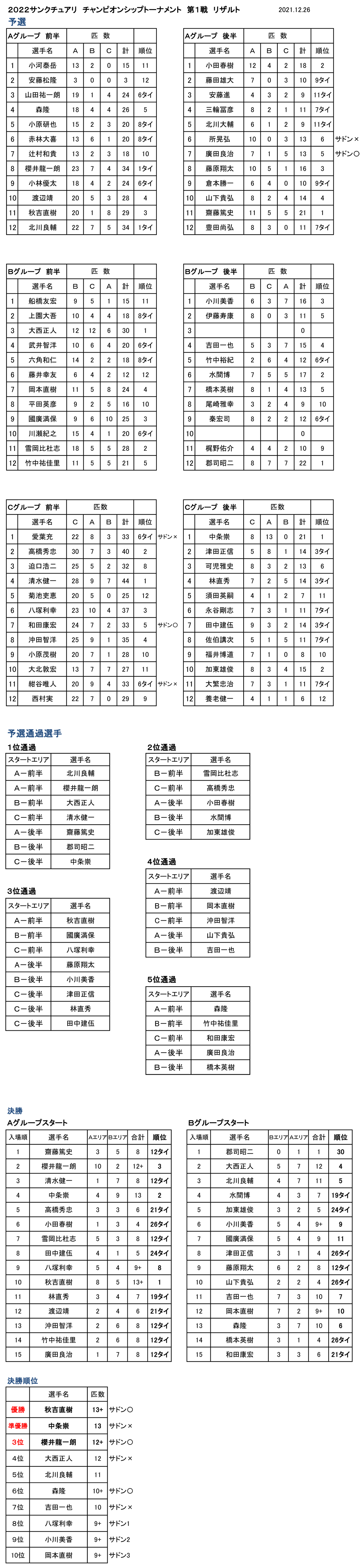 ■2022年 サンクチュアリ チャンピオンシップトーナメント 第1戦