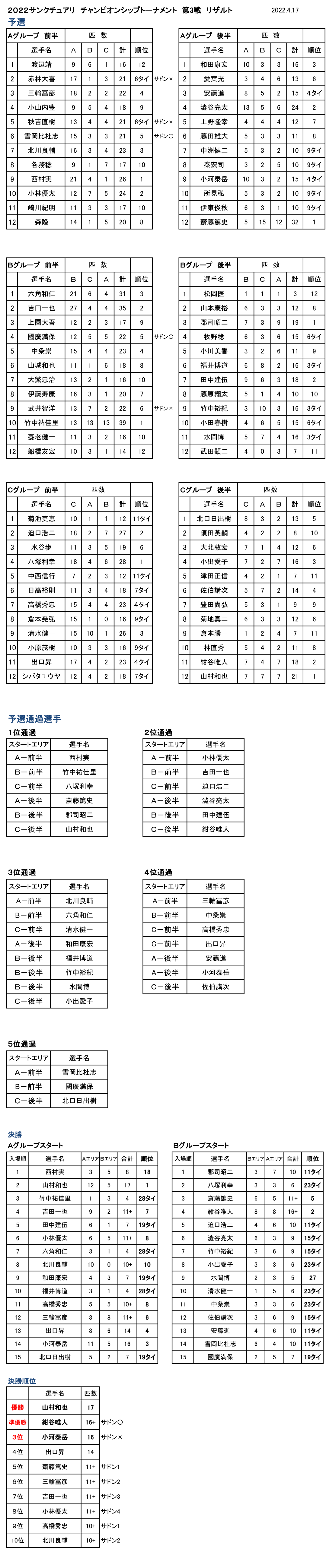 ■2022年 サンクチュアリ チャンピオンシップトーナメント 第3戦